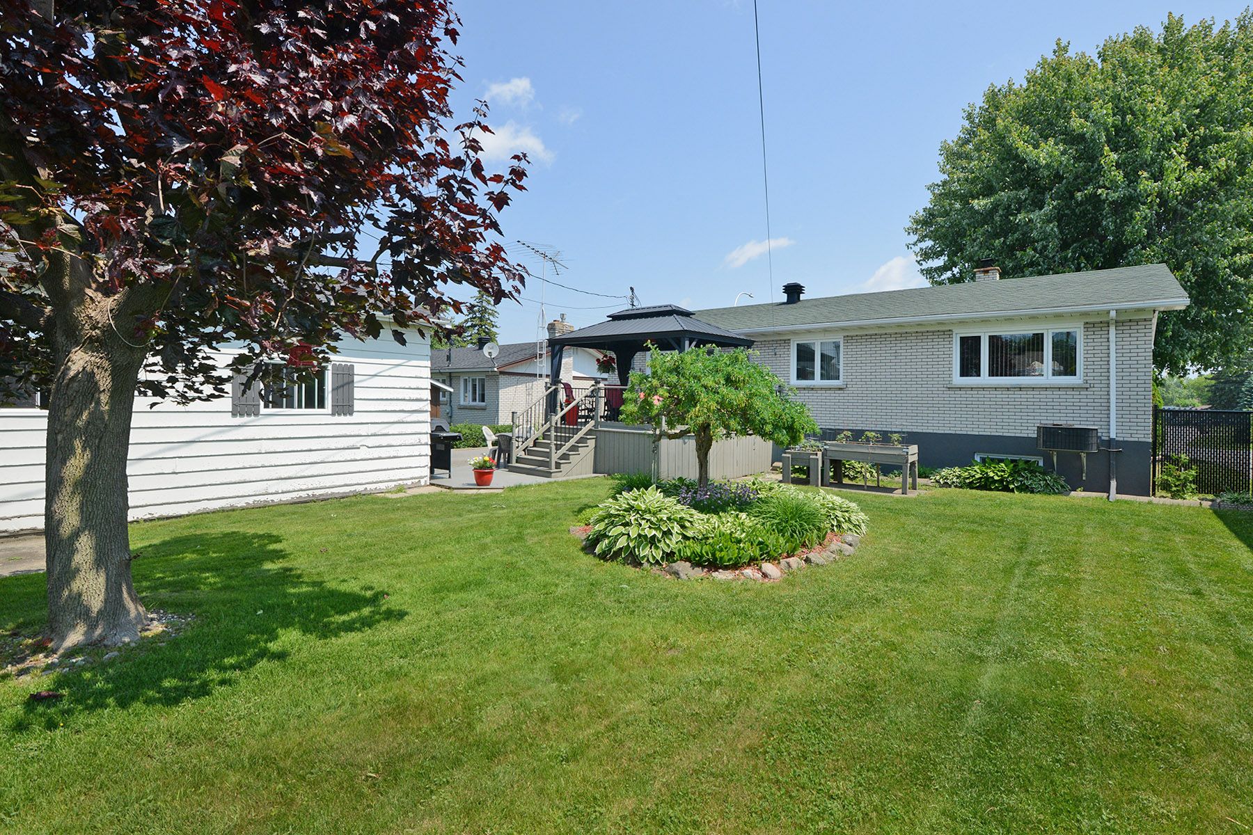 Joli bungalow tout briques avec garage détaché et cour intime avec superbe terrasse. Situé dans un secteur paisible et recherchée, cette propriété a été entretenue avec soin, intérieur chaleureux et spacieux, sous-sol bien aménagé avec Bar rétro et poêle aux bois. Une visite vous charmera! |