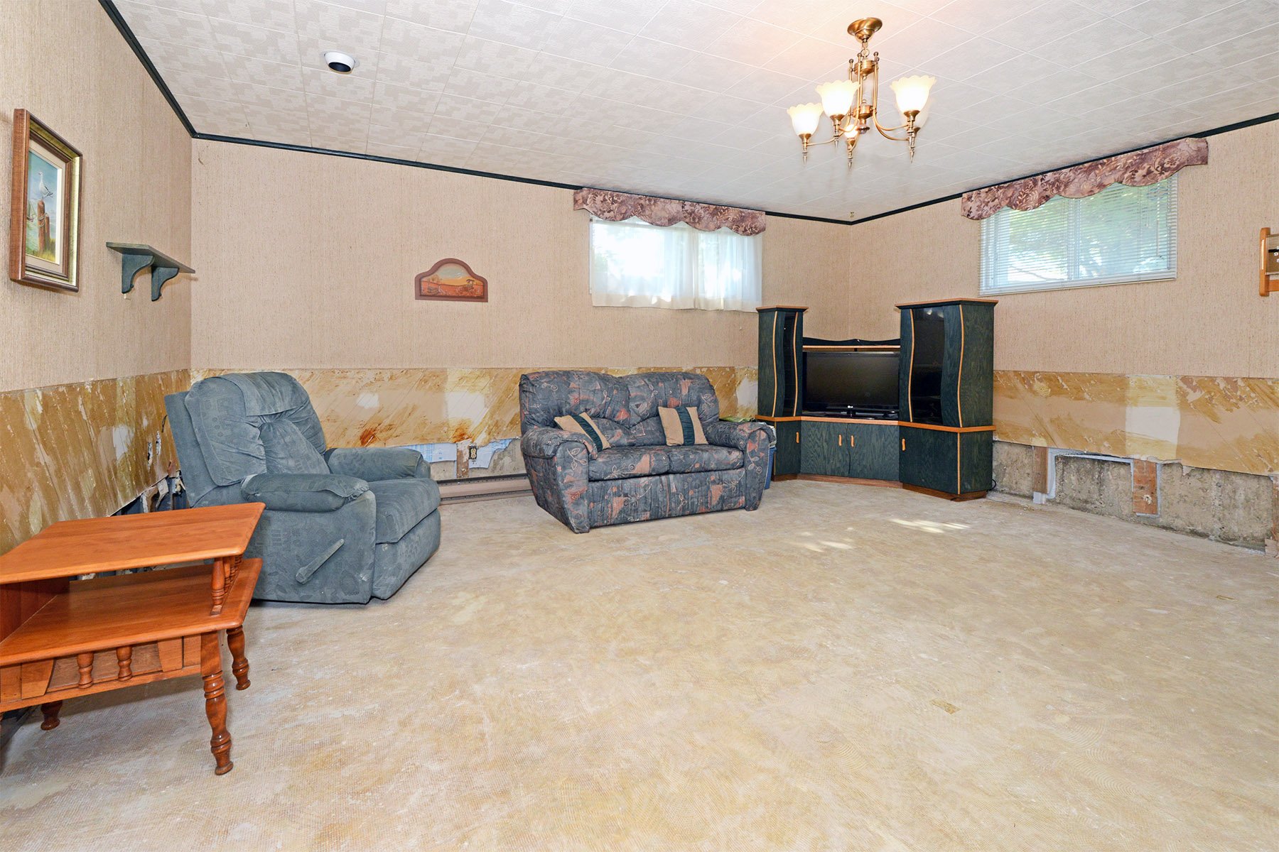 Sous-sol | Salle familiale | 16.6x17 P Irrégulier | Béton | foyer Gaz |
