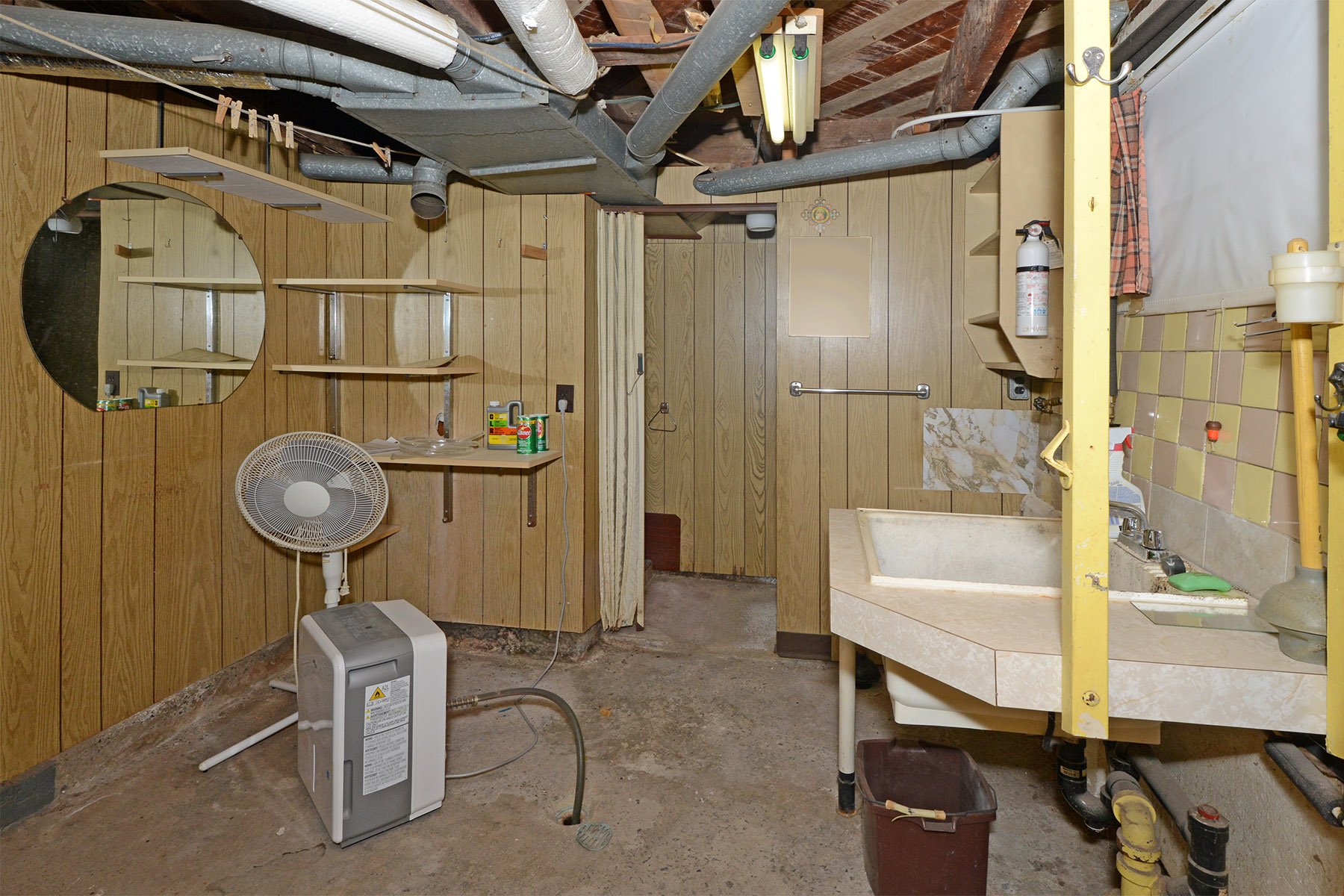 Sous-sol | Salle de lavage | 12.8x8.8 P Irrégulier | Béton | S-E non fonctionnelle |