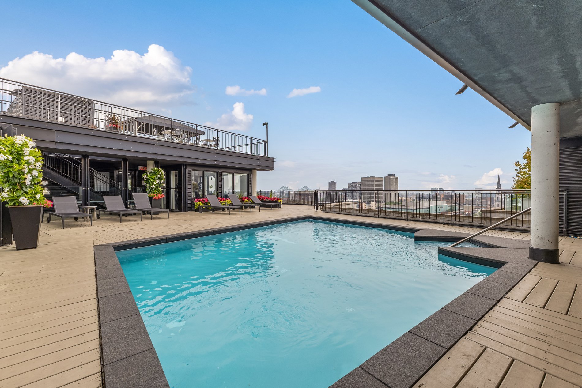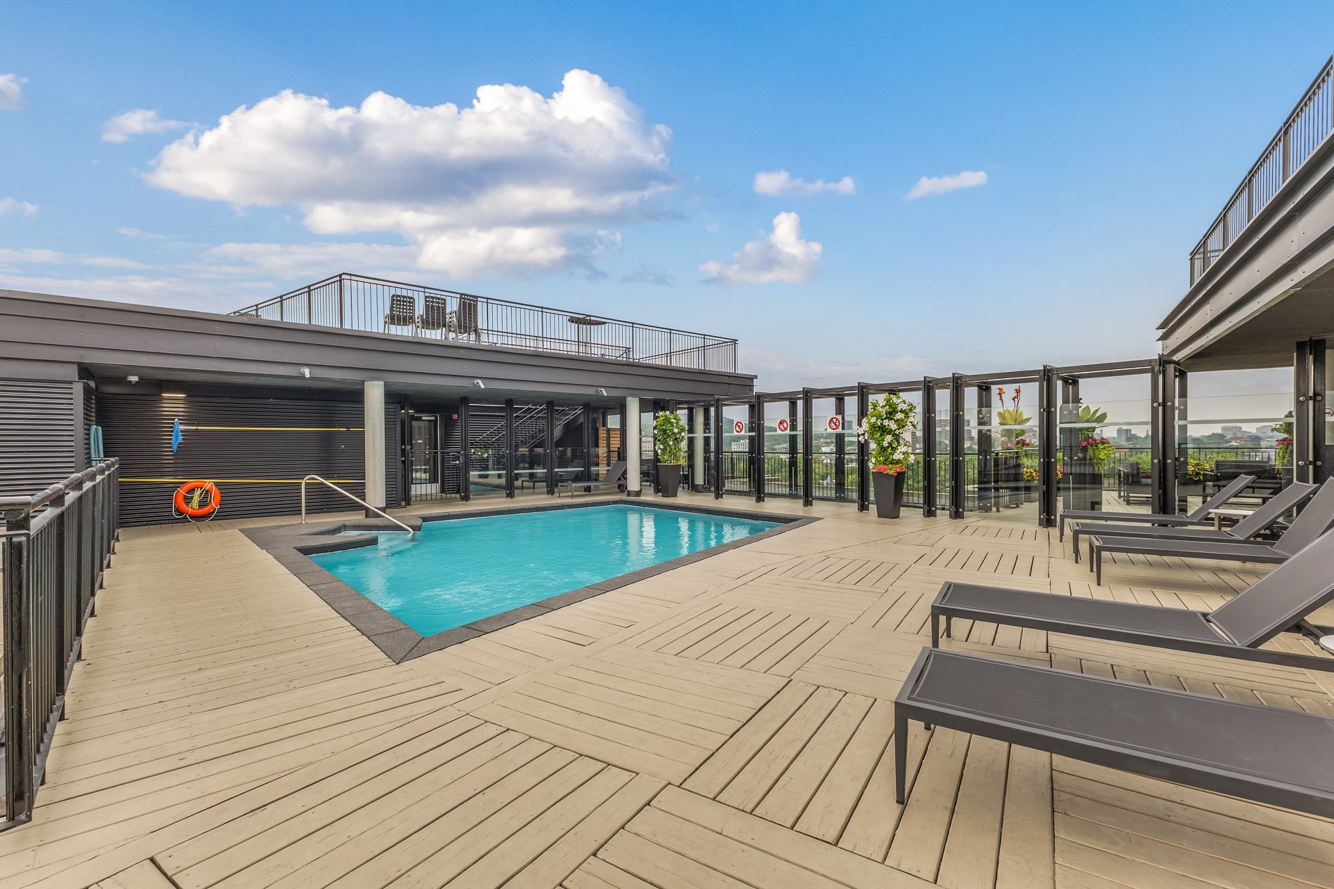 | Services disponibles | Aires communes, Balcon/Terrasse, Chute à déchets, Cour, Système de détection de fuite d'eau, Détecteur d'incendie, Salle d'exercice, Piscine extérieure, Espace de rangement intérieur, Terrasse sur le toit |