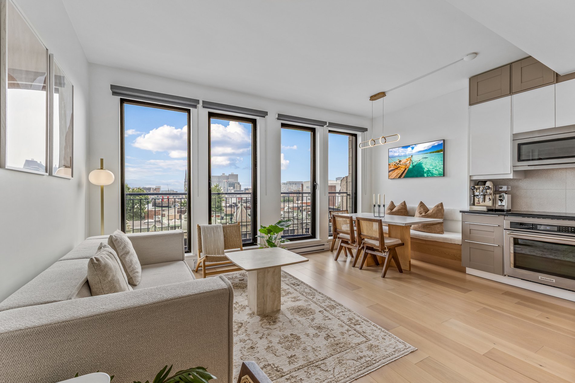 | Splendide condo situé dans le prestigieux et très prisé complexe 333 Sherbrooke. Offrant 2 STATIONNEMENTS INTÉRIEUR avec une borne pour VE ainsi que 2 rangements, cette magnifique unité fut entièrement rénovée avec soin. L'esthétisme recherché s'allie parfaitement à la vue imprenable que vous offre les grandes fenêtres. Lumineux et chaleureux, vous serez charmés par ce condominium. Sur le toit, vous avez accès à une piscine creusée ainsi qu'à une vaste terrasse d'où vous pourrez admirer la ville de Montréal de manière panoramique. À proximité du métro, du Carré Saint-Louis, du Théâtre Saint-Denis et d'écoles, Condo parfaitement situé. |