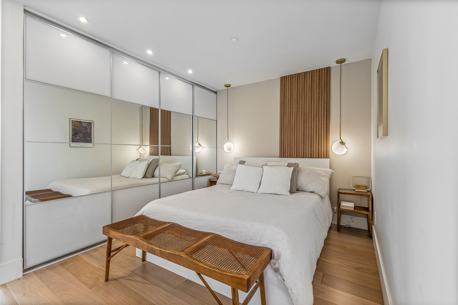 | Inclusions | Luminaires, stores, réfrigérateur, plaque de cuisson, four encastré, lave-vaisselle, hotte micro-ondes, base de lit avec tiroirs, penderie pax chambre à coucher, système de détection fuite d'eau, 2 stationnements, 2 espaces de rangement. |